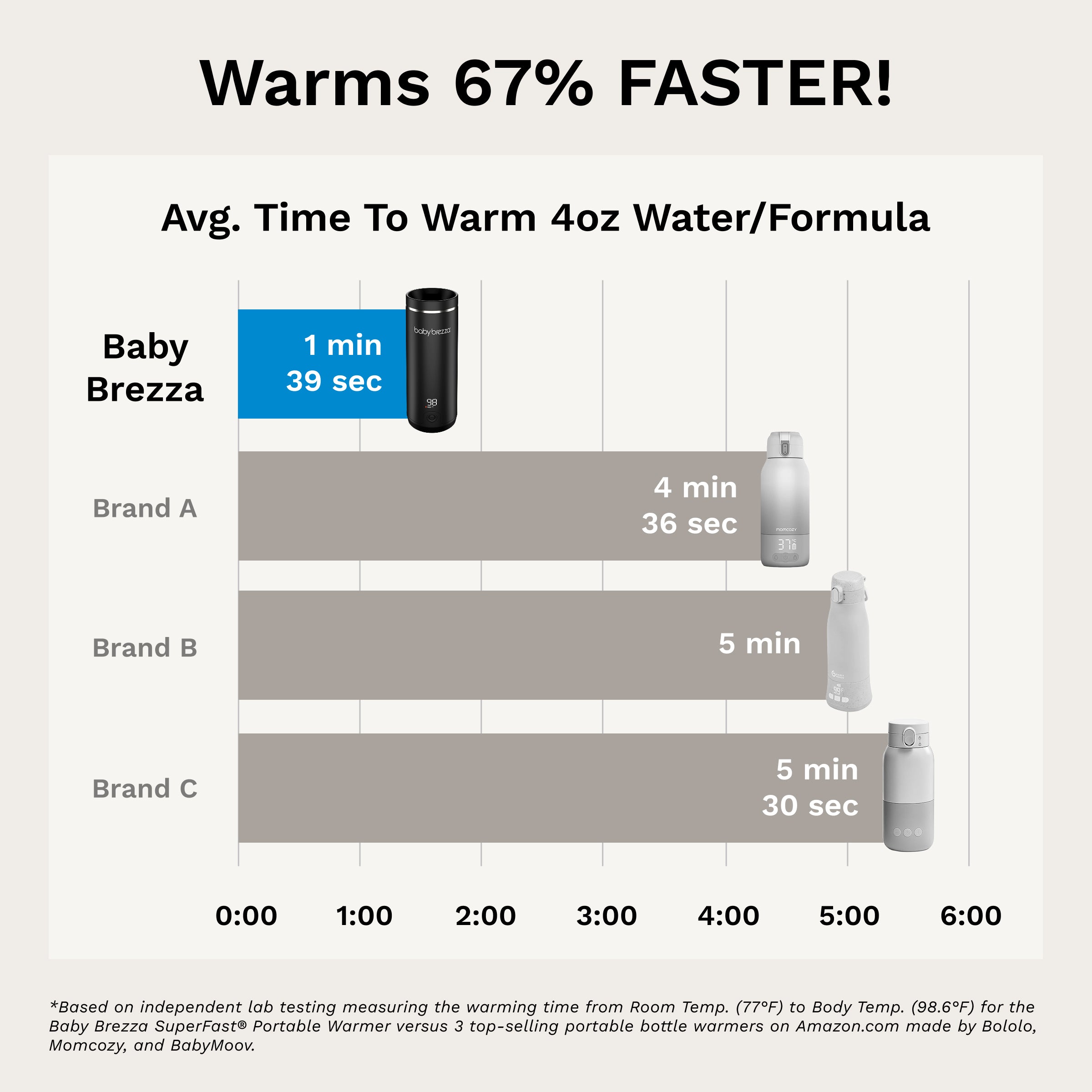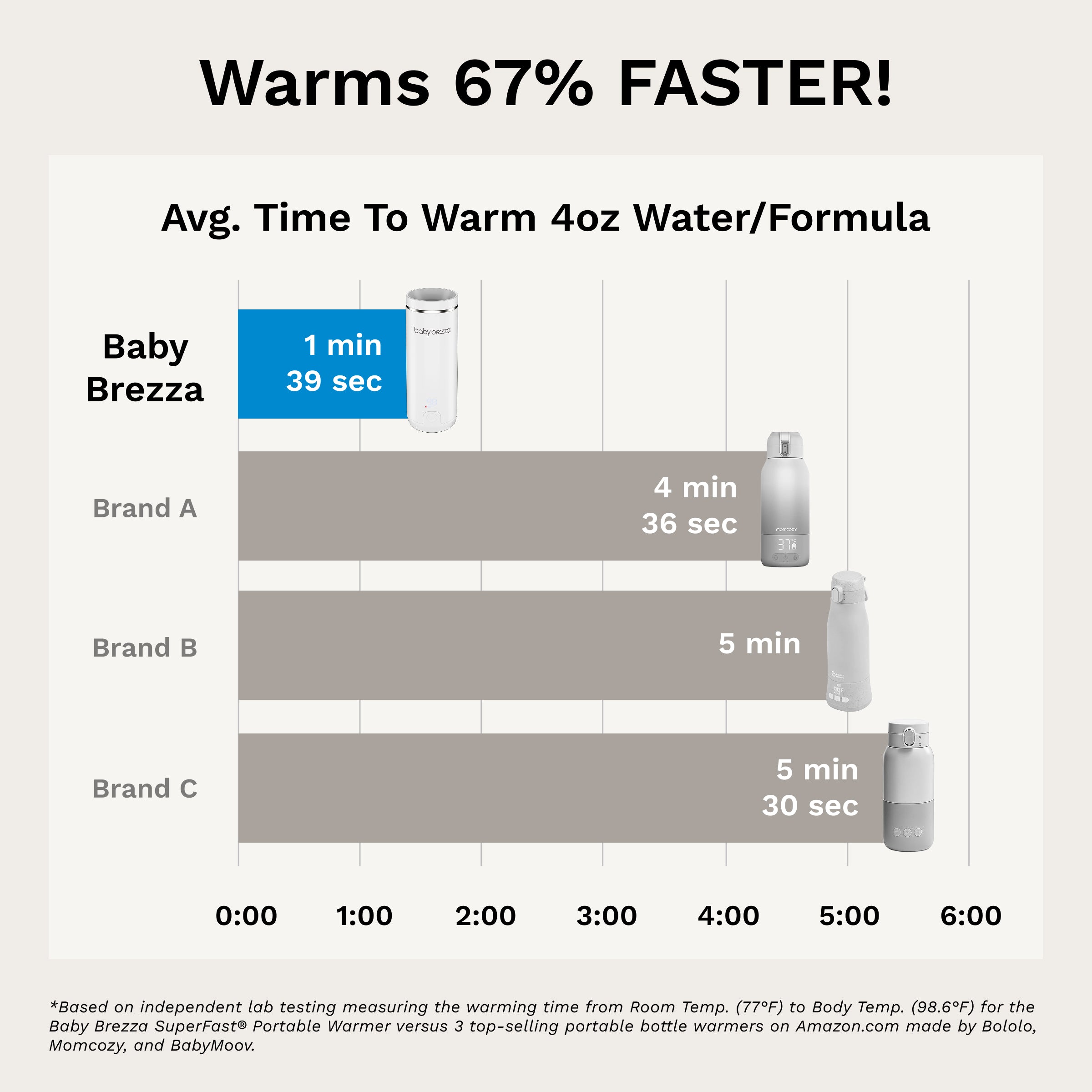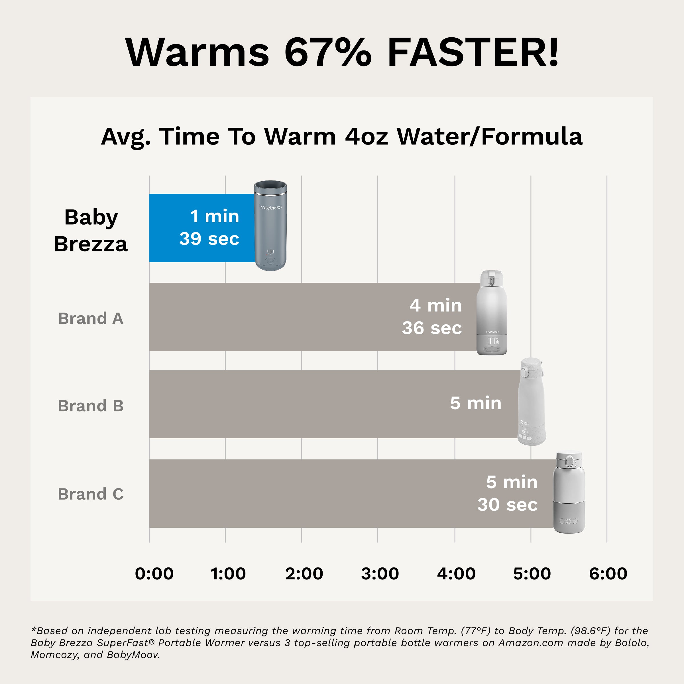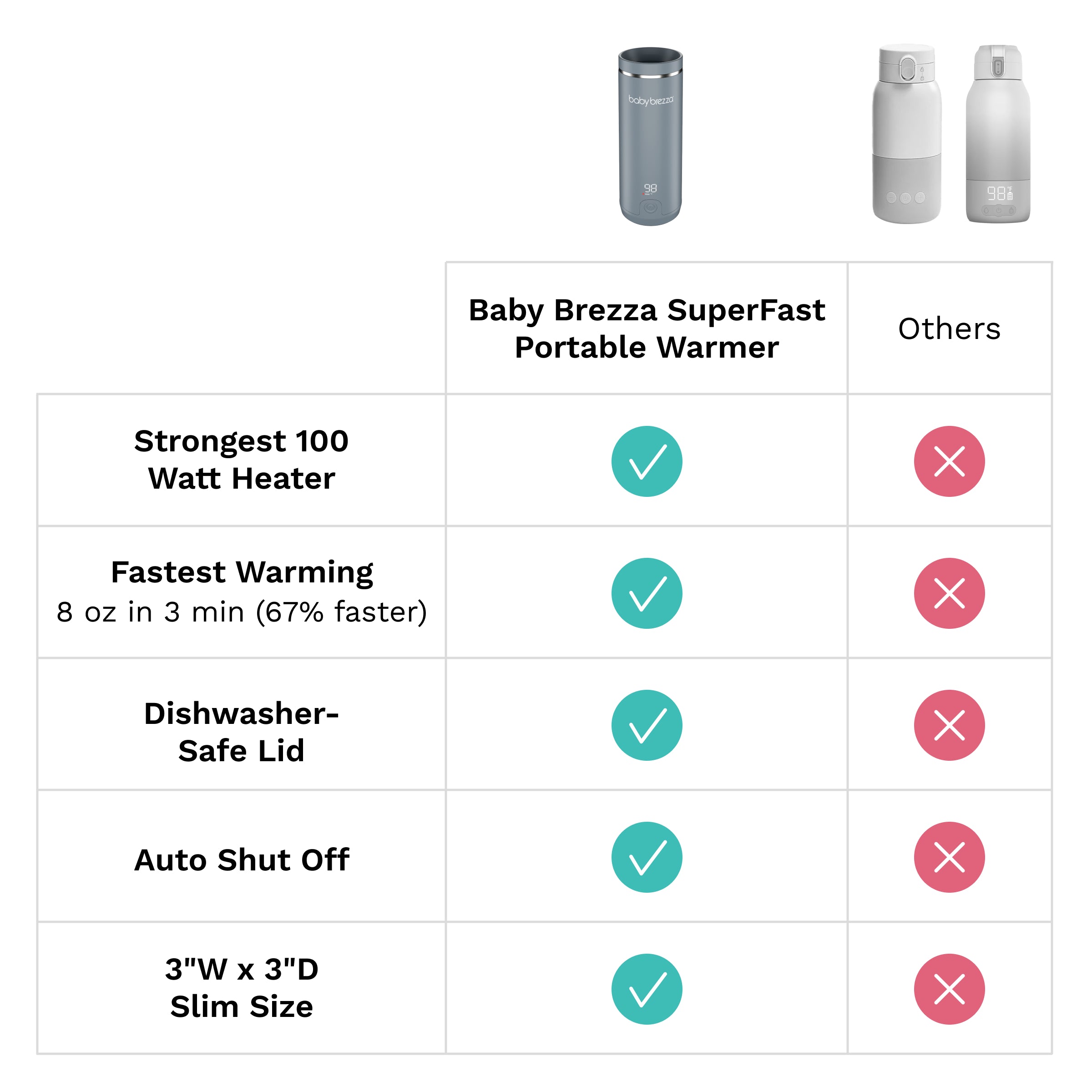 • Warms fastest – 67% faster than other portable warmers; warms 8 oz in 3 minutes (from room to body temp); heater is 67% stronger than other brands (100w vs 60w)?